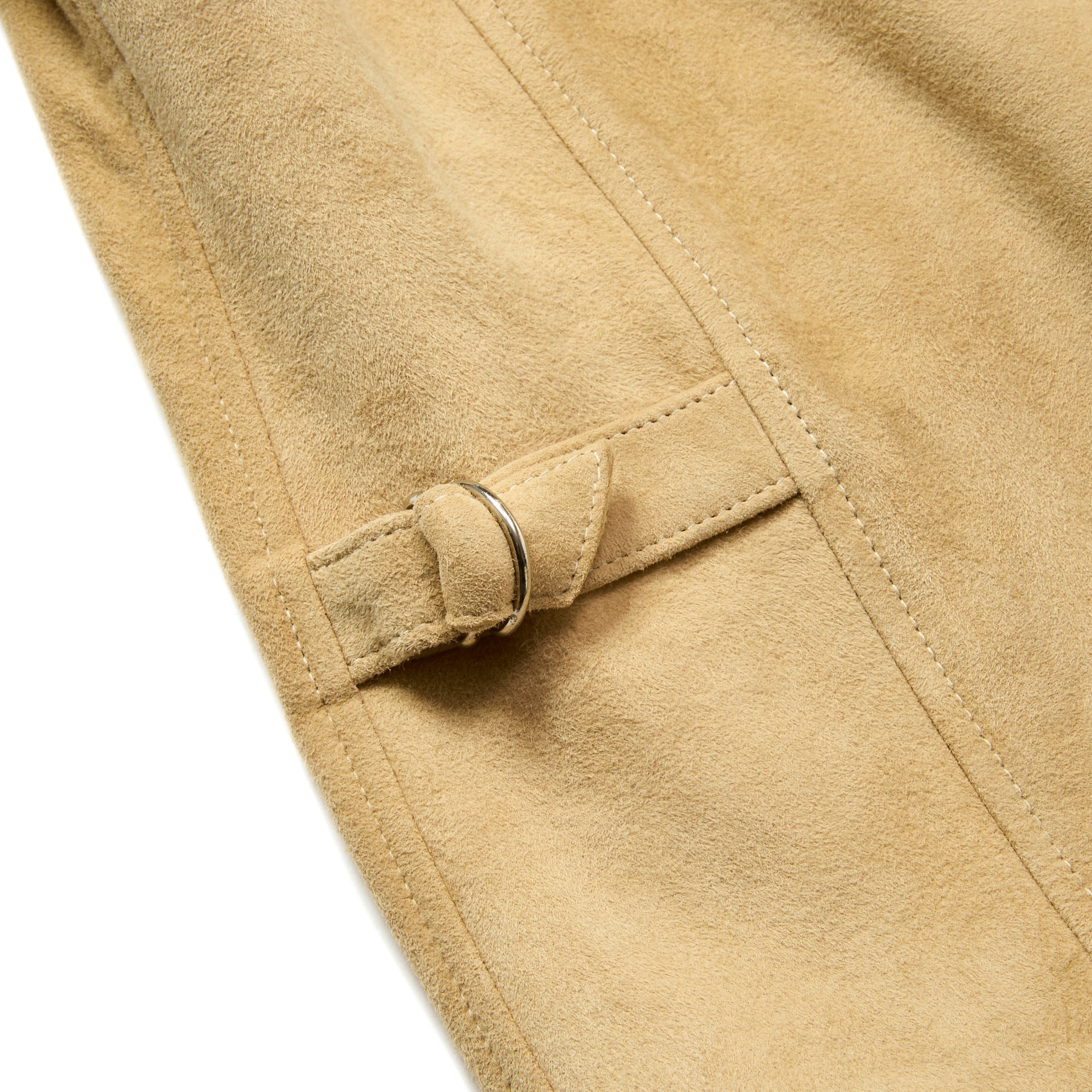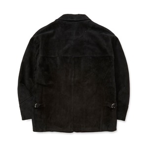 ゴートレザーのバックスキンを使用して作製されたカーコート型のレザージャケット。裏地にはキュプラを使用。