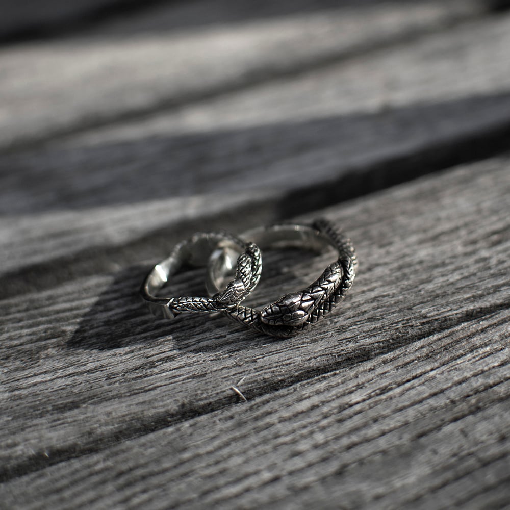 粘土細工の創作活動の中、造形物で表現する事への可能性にのめり込み、2014年より本格的にシルバーアクセサリーを展開しているD.O.Dに製作を依頼したスネークナローリング。