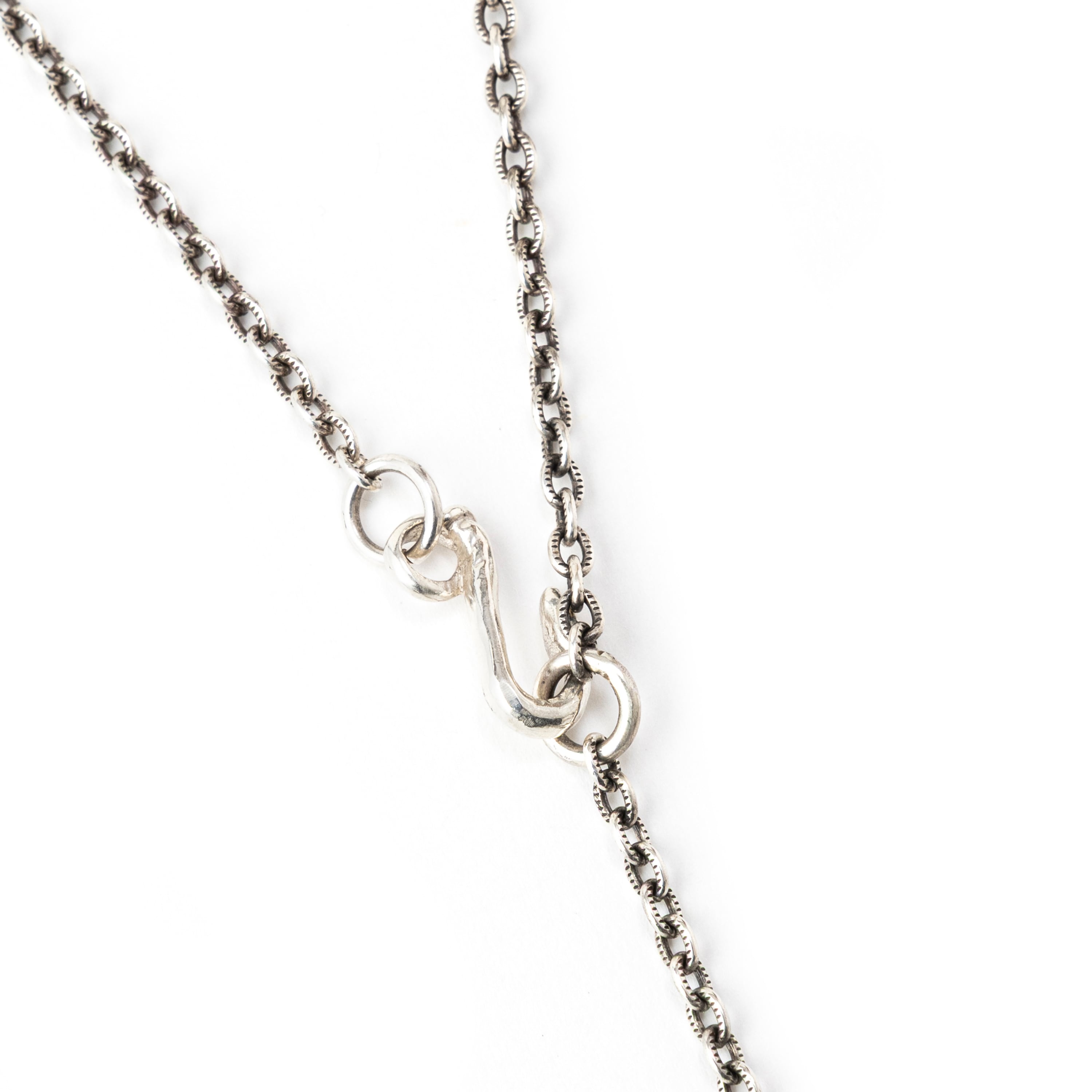 粘土細工の創作活動の中、造形物で表現する事への可能性にのめり込み、2014年より本格的にシルバーアクセサリーを展開しているD.O.Dに製作を依頼したスネークホイール型ネックレス。