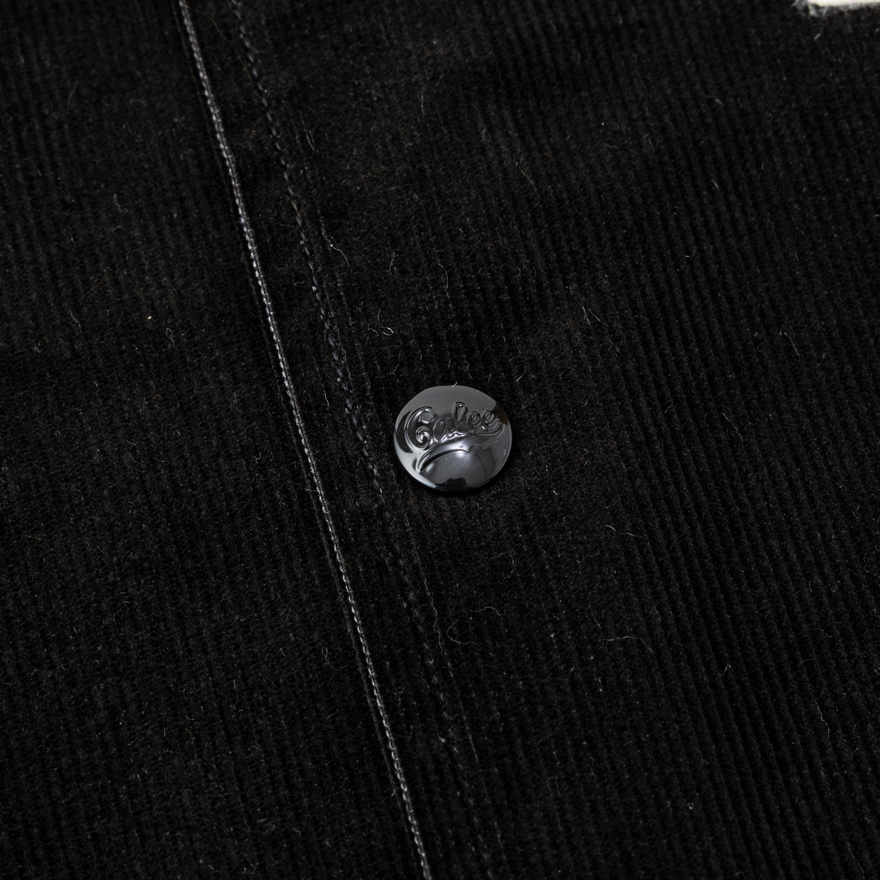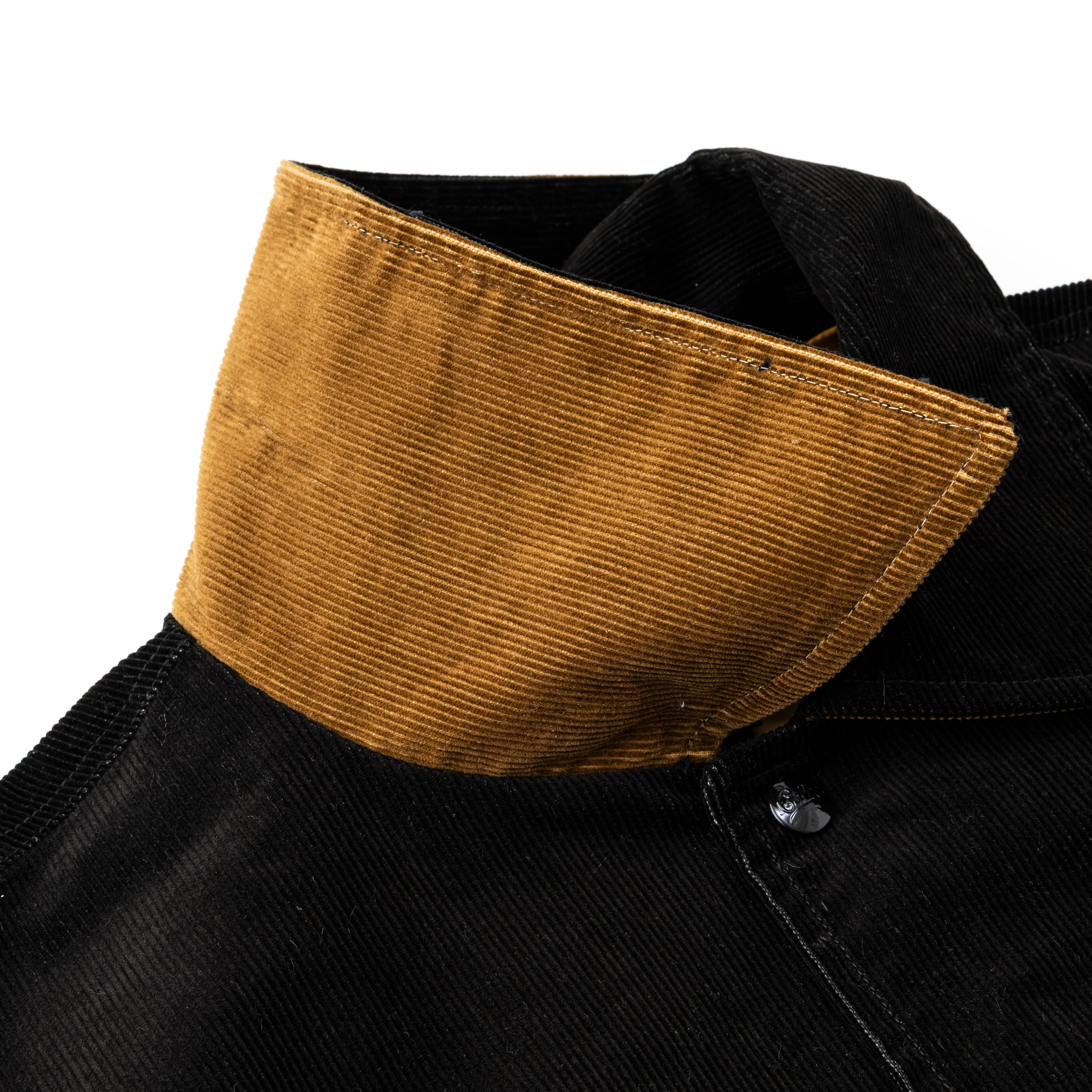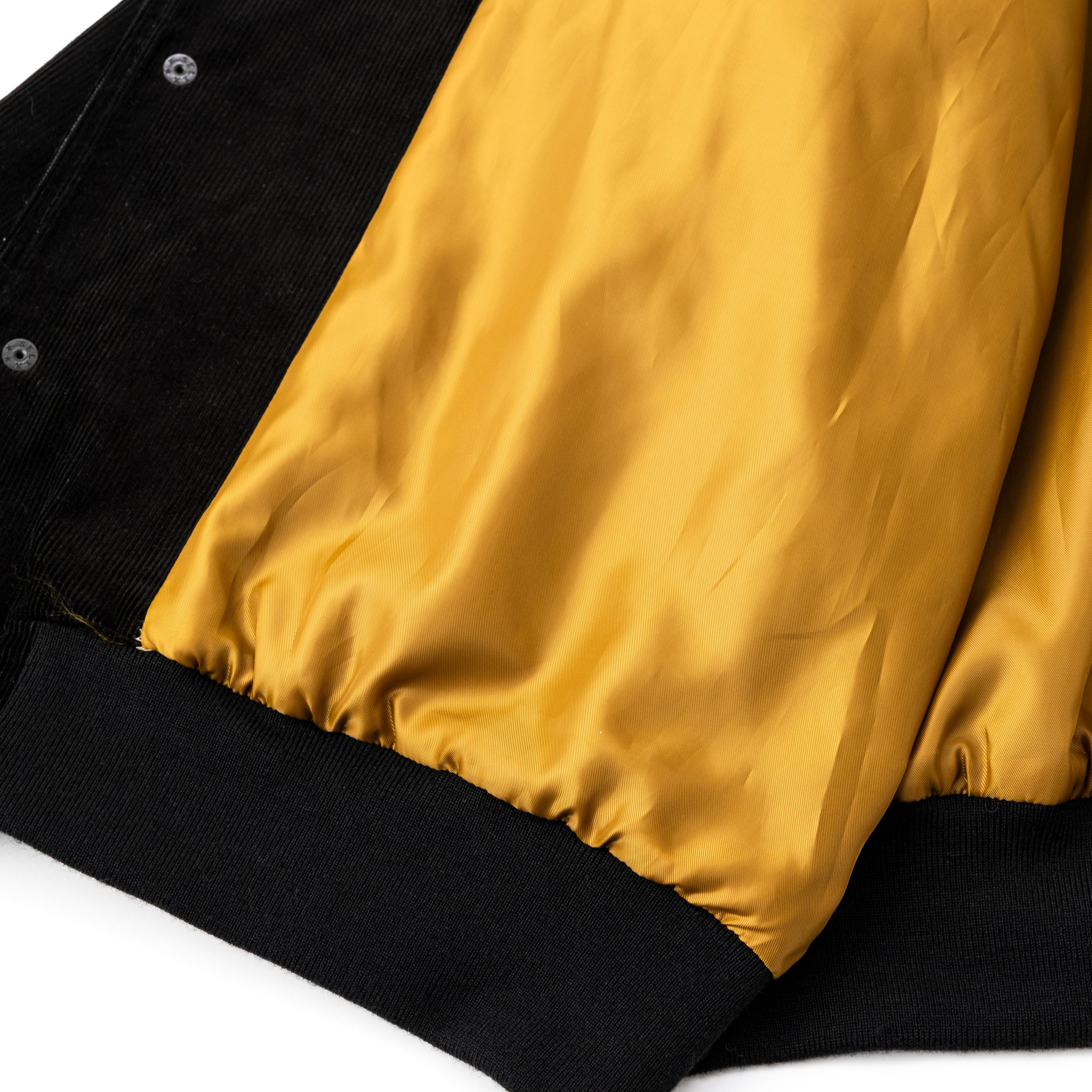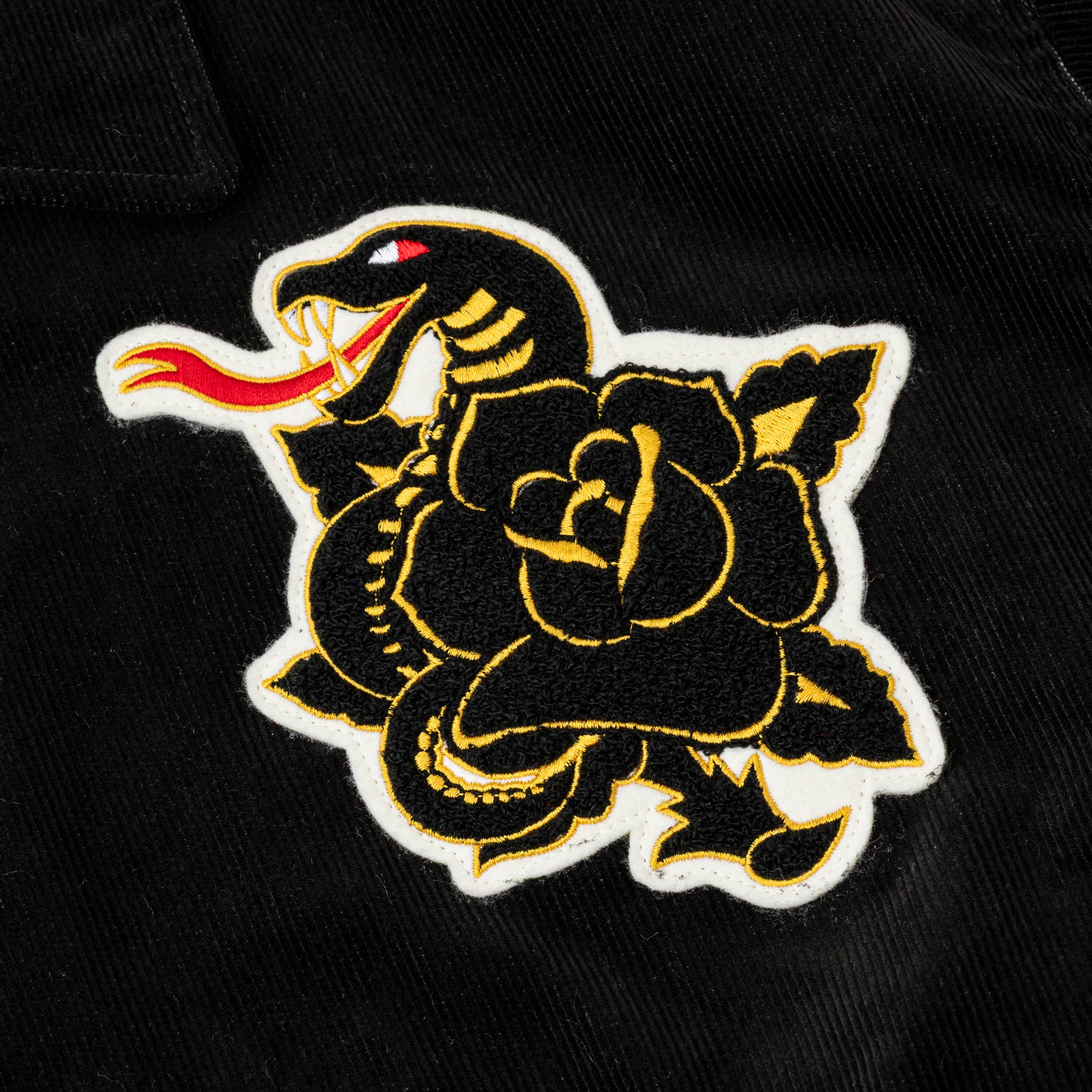 コーデュロイリブジャケット。襟のコーデュロイは切替仕様。オリジナルスネークサガラワッペンを左胸に配した。裏地にキュプラ生地。