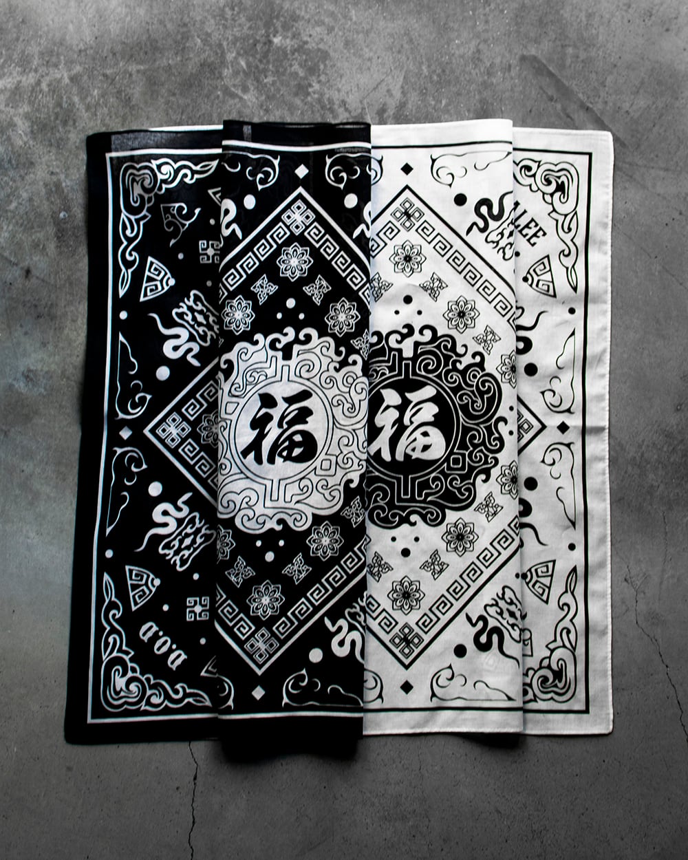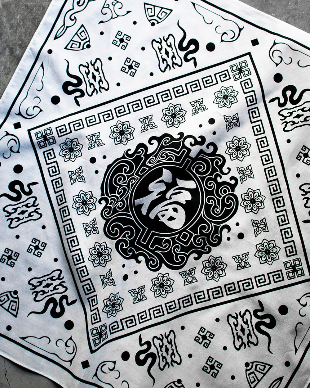 粘土細工の創作活動の中、造形物で表現する事への可能性にのめり込み、2014年より本格的にシルバーアクセサリーを展開しているD.O.Dにグラフィックを依頼した福バンダナ。